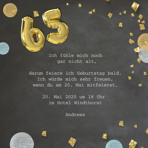 Einladung 65 Geburtstag Mit Konfetti Und Goldenen Ballons