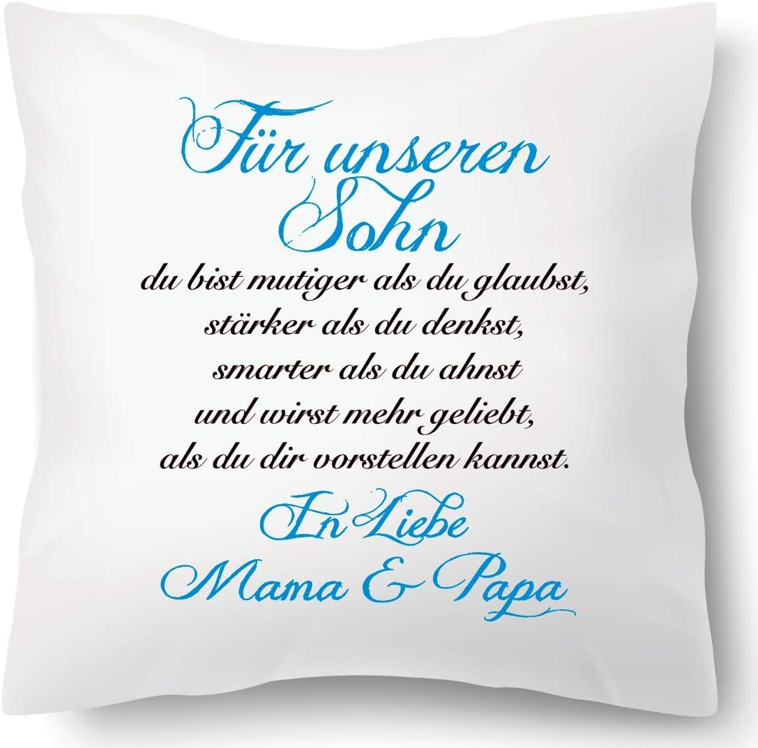 Farbwuselei Kissen Mit Spruch Fur Unseren Sohn In Liebe Mama Und Papa Blau Kissenhulle Inlay Kissenbezug Geschenk Eltern Amazon De Kuche Haushalt